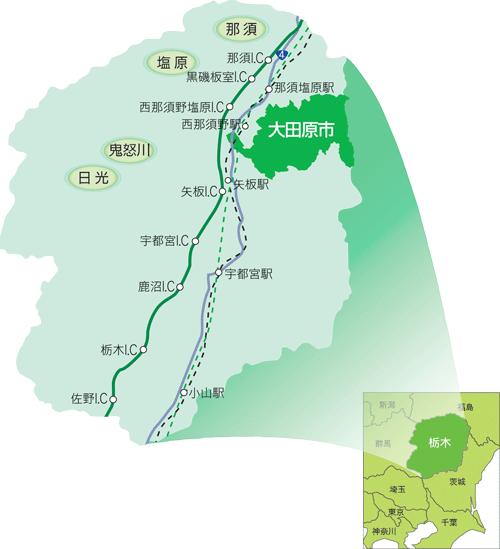 栃木県北東部、新幹線・JR線、高速道路、そして主要道路により好アクセスでなおかつ歴史と文化に富んだ街です。